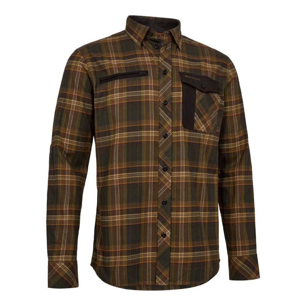 Detaljer i konstmocka Krage med dold knäppning Bröstficka med dragkedja Bröstficka med ficklock Veck baktill för bättre komfort Armbågslappar